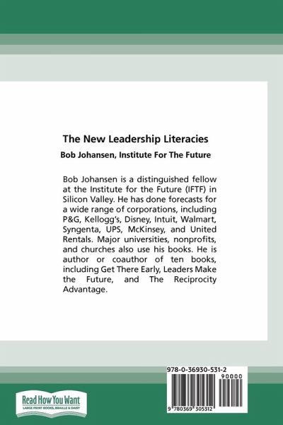 Over the next decade, today's connected world will be explosively more connected. Anything that can be distributed will be distributed: workforces, organizations, supply webs, and more. The tired practices of centralized organizations will become brittle in a future where authority is radically decentralized. Rigid hierarchies will give way to liquid structures. Most leaders-and most organizations-aren't ready for this future. Are you? It's too late to catch up, but it's a great time to leapfrog. Noted futurist Bob Johansen goes beyond skills and competencies to propose five new leadership literacies-combinations of disciplines, practices, and worldviews-that will be needed to thrive in a VUCA world of increasing volatility, uncertainty, complexity, and ambiguity. This book shows how to (1) forecast likely futures so you can ''look back'' and make sure you're prepared now for the changes to come, (2) use low-risk gaming spaces to work through your concerns about the future and hone your leadership skills, (3) lead shape-shifting organizations where you can't just tell people what to do, (4) be a dynamic presence even when you're not there in person, and (5) keep your personal energy high and transmit that energy throughout your organization. This visionary book provides a vivid description of the ideal talent profile for future leaders. It is written for current, rising star, and aspiring leaders; talent scouts searching for leaders; and executive coaches seeking a fresh view of how leaders will need to prepare. To get ready for this future, we will all need new leadership literacies.