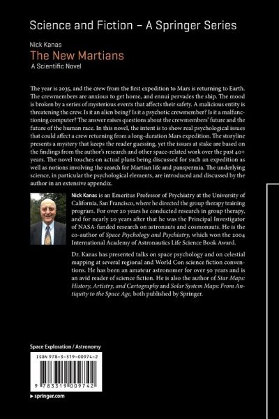 The year is 2035, and the crew from the first expedition to Mars is returning to Earth. The crewmembers are anxious to get home, and ennui pervades the ship. The mood is broken by a series of mysterious events that jeopardize their safety. Someone or something is threatening the crew. Is it an alien being? A psychotic crewmember? A malfunctioning computer? The truth raises questions about the crewmembers' fate and that of the human race.In this novel, the intent is to show real psychological issues that could affect a crew returning from a long-duration mission to Mars. The storyline presents a mystery that keeps the reader guessing, yet the issues at stake are based on the findings from the author's research and other space-related work over the past 40+ years. The novel touches on actual plans being discussed for such an expedition as well as notions involving the search for Martian life and panspermia.The underlying science, in particular the psychological, psychiatric, and interpersonal elements, are introduced and discussed by the author in an extensive appendix.Nick Kanas is an Emeritus Professor of Psychiatry at the University of California, San Francisco, where he directed the group therapy training program. For over 20 years he conducted research on group therapy, and for nearly 20 years after that he was the Principal Investigator of NASA-funded research on astronauts and cosmonauts. He is the co-author of Space Psychology and Psychiatry, which won the 2004 International Academy of Astronautics Life Science Book Award, and the author of Humans in Space: The Psychological Hurdles, which won the 2016 International Academy of Astronautics Life Science Book Award.