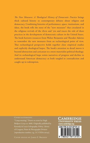 The New Measures: A Theological History of Democratic Practice brings thick cultural history to contemporary debates about religion and democracy. Combining histories of performance, space, institutions, and ideas, the book tells the story of the 'new measures' that circulated in the religious revivals of the 1820s and '30s and traces the role of these practices in the development of democratic culture in the United States. The book borrows resources from Walter Benjamin and Theodor Adorno to remember the new measures from an eschatological point of view. That eschatological perspective holds together close empirical studies and explicitly theological hopes. The book's attention to detail moves it beyond abstraction and caricature to a more materialist political theology. And its eschatological hope resists narratives of progress and decline to understand American democracy as both tangled in contradiction and caught up in redemption.
