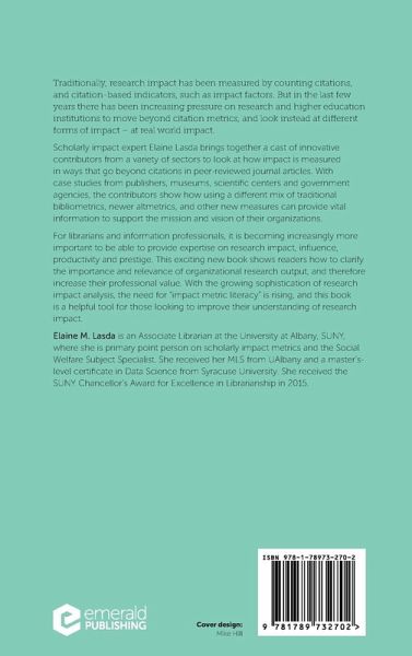 New methods in bibliometrics and alternative metrics provide us with information about research impact at both increasingly granular and global levels. Here, editor Elaine Lasda and a cast of expert contributors present a variety of case studies that demonstrate the practical utilization of these new scholarly metrics.
