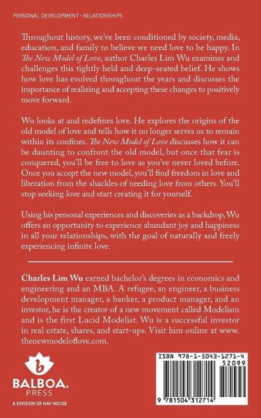 Throughout history, weve been conditioned by society, media, education, and family to believe we need love to be happy. In The New Model of Love, author Charles Lim Wu examines and challenges this tightly held and deep-seated belief. He shows how love has evolved throughout the years and discusses the importance of realizing and accepting these changes to positively move forward. Wu looks at and redefines love. He explores the origins of the old model of love and tells how it no longer serves us to remain within its confines. The New Model of Love discusses how it can be daunting to confront the old model, but once that fear is conquered, youll be free to love as youve never loved before. Once you accept the new model, youll find freedom in love and liberation from the shackles of needing love from others. Youll stop seeking love and start creating it for yourself. Using his personal experiences and discoveries as a backdrop, Wu offers an opportunity to experience abundant joy and happiness in all your relationships, with the goal of naturally and freely experiencing infinite love.