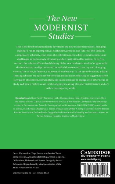 Introduction Douglas Mao; Part I. Histories; 1. History's Prehistory: Modernist Studies before the New Michael North; 2. Scholarship's Turn: Origins and Effects of the New Modernist Studies Mark Wollaeger; Part II. Horizons: 3. Planetarity's Edges: Modernist Studies and the Bounds of Modernism María del Pilar Blanco; 4. Religion's Configurations:Modernism, Empire, Comparison Susan Stanford Friedman; 5. Disability's Disruptions: Embodiment and the New Modernist Studies Maren Linett; 6. Affect's Vocabularies: Literature and Feeling after 1890 David James; 7. Invisibility's Arts: The Seen and the Unseen in Modernism and Modernist Studies Sarah Cole; 8. Black Writing's Visuals: African American Modernism in Nugent, Ligon, and Rankine Miriam Thaggert; 9. Noir Film's Soundtracks: Jazz, Black Transnationalism, and Postcolonial Genres of Criminality Edwin Hill; 10. Language's Hopes: Global Modernism and the Science of Debabelization Aarthi Vadde; 11. Revolution's Demands: Modernism, Socialist Realism, and the Manifesto Steven Lee; 12. Feminism's Archives: Intersectionality with Loy and Mendelssohn Sara Crangle; 13. Risk's Instruments: Speculation, Futurity, and Modernist Finance Gayle Rogers; 14. Deep Time's Hauntings: Modernism and Alternative Chronology Paul Saint-Amour.