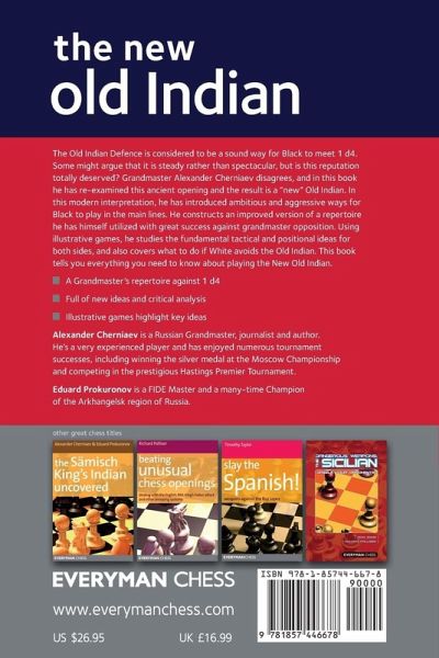 The Old Indian Defence is considered to be a sound way for Black to meet 1 d4. Some might argue that it is steady rather than spectacular, but is this reputation totally deserved? Grandmaster Alexander Cherniaev strongly disagrees, and in this book he introduces ambitious and aggressive ways for Black to play in the main lines. He constructs an improved version of a repertoire he has himself utilized with great success against grandmaster opposition. Using illustrative games, he studies the fundamental tactical and positional ideas for both sides, and also covers what to do if White avoids the Old Indian. This book tells you everything you need to know about playing the New Old Indian.