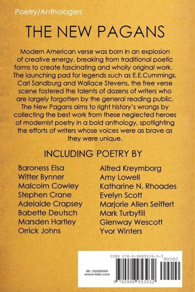 Modern American verse was born in an explosion of creative energy, breaking from traditional poetic forms to create fascinating and wholly original work. The launching pad for legends such as E.E. Cummings, Carl Sandburg and Wallace Stevens, the free verse scene fostered the talents of dozens of writers who are largely forgotten by the general reading public. The New Pagans aims to right history's wrongs by collecting the best work from these neglected heroes of modernist poetry in a bold anthology, spotlighting the efforts of writers whose voices were as brave as they were unique. Featuring poetry by Amy Lowell, Babette Deutsch, Malcolm Cowley, Yvor Winters, Glenway Wescott and many others.