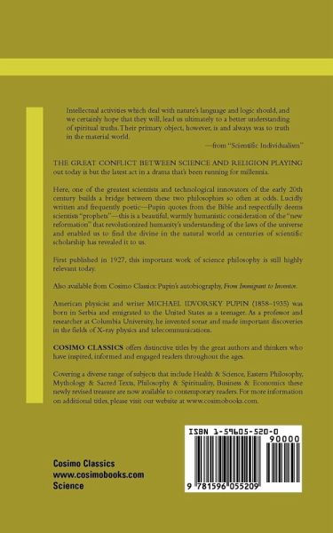 Intellectual activities which deal with nature's language and logic should, and we certainly hope that they will, lead us ultimately to a better understanding of spiritual truths. Their primary object, however, is and always was to truth in the material world. -from "Scientific Individualism" The great conflict between science and religion playing out today is but the latest act in a drama that's been running for millennia. Here, one of the greatest scientists and technological innovators of the early 20th century builds a bridge between these two philosophies so often at odds. Lucidly written and frequently poetic-Pupin quotes from the Bible and respectfully deems scientists "prophets"-this is a beautiful, warmly humanistic consideration of the "new reformation" that revolutionized humanity's understanding of the laws of the universe and enabled us to find the divine in the natural world as centuries of scientific scholarship has revealed it to us. First published in 1927, this important work of science philosophy is still highly relevant today. Also available from Cosimo Classics: Pupin's autobiography, From Immigrant to Inventor. American physicist and writer MICHAEL IDVORSKY PUPIN (1858-1935) was born in Serbia and emigrated to the United States as a teenager. As a professor and researcher at Columbia University, he invented sonar and made important discoveries in the fields of X-ray physics and telecommunications.