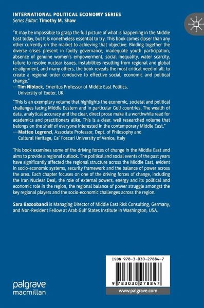 This book examines some of the driving forces of change in the Middle East and aims to provide a regional outlook. The political and social events of the past years have significantly affected the regional structure across the Middle East, evident in socio-economic systems, security framework and the balance of power across the area. Each chapter focuses on one of the driving forces of change, including the Iran Nuclear Deal, the role of external powers, energy and its political and economic role in the region, the regional balance of power struggle amongst the key regional players and the socio-economic challenges across the region.