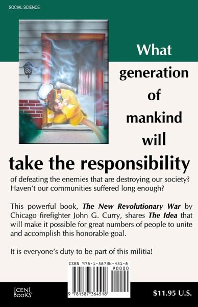 What generation of mankind will take the responsibility of defeating the enemies that are destroying our society? Haven't our communities suffered long enough? This powerful book, The New Revolutionary War by Chicago firefighter John G. Curry, shares The Idea that will make it possible for great numbers of people to unite and accomplish this honorable goal. It is everyone's duty to be part of this militia!