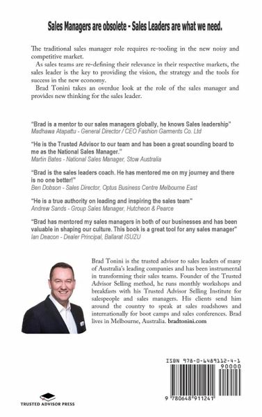 Sales managers are obsolete but sales leaders are what we need. The traditional sales manager role requires re-tooling in the new noisy and competitive market. No longer can the role be a dictatorial position nor one where the manager is a manager by title. As sales teams are re-defining their relevance in their respective markets, the sales leader is the key to providing the vision, the strategy and the tools for success in the new economy. Brad Tonini takes an overdue look at the role of the sales leader today and the way they can transform their team through:- *Transformational mindset; *Transformational sales processes and *Transformational coaching Step inside and see how you can maximise your value to your team and get to work on some new tools for sales leadership success.