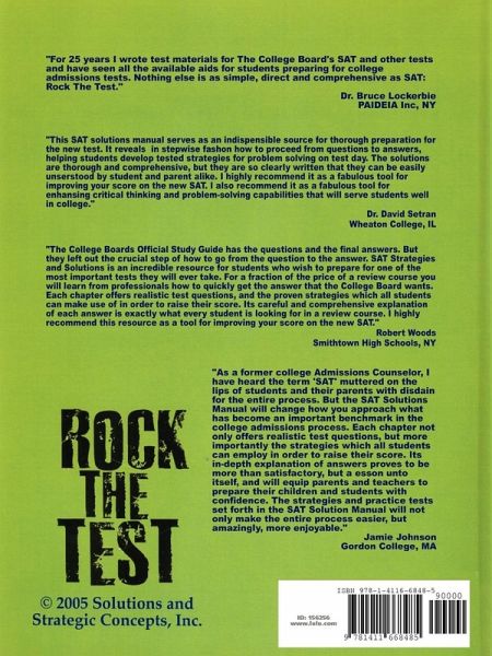 The College Board's Official Study Guide has the questions and the final answers. But they left out the crucial step of how to go from the question to the answer. This companion book fills that void. Learn from professionals how to quickly get the answer that the College Board wants.