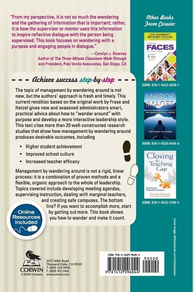 Achieve success step by step The topic of management by wandering around is not new, but the authors' approach is fresh and timely. This current rendition based on the original work by Frase and Hetzel gives new and seasoned administrators smart, practical advice about what to do in critical school leadership circumstances. This text cites more than 20 well-constructed research studies that show how management by wandering around produces desirable outcomes, including: Higher student achievement Improved school culture Higher teacher efficacy Topics covered include developing meeting agendas, supervising instruction, dealing with marginal teachers, and creating safe campuses.