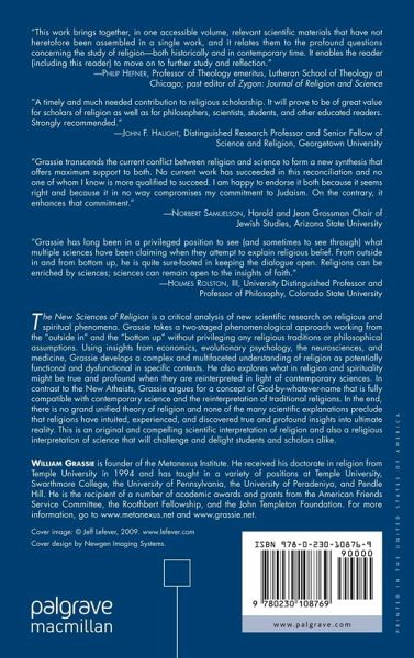 The New Sciences of Religion is a critical analysis of new scientific research on religious and spiritual phenomena. William Grassie takes a two-staged phenomenological approach working from the "outside in" and the "bottom up" without privileging at the outset any religious traditions or philosophical assumptions. Using insights from economics, evolutionary psychology, the neurosciences, and medicine, Grassie develops a complex and multifaceted understanding of religion as potentially functional and dysfunctional in specific contexts, differentially so for individuals and groups. The New Sciences of Religion then asks what in religion and spirituality might also be true and profound when our received traditions are reinterpreted in light of contemporary sciences. In contrast to the New Atheists, Grassie argues for a concept of God-by-whatever-name that is fully compatible with contemporary science and the reinterpretation of traditional religions. In the end, there is no grand unified theory of religion and none of the many scientific explanations of religion preclude that religions have intuited, experienced, and discovered true and profound insights into the nature of ultimate reality and human existence. This is an original and compelling scientific interpretation of religion and also a religious interpretation of science that will challenge and delight students and scholars alike.