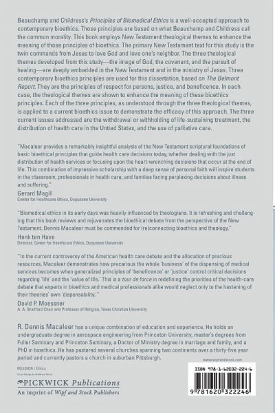 Beauchamp and Childress's Principles of Biomedical Ethics is a well-accepted approach to contemporary bioethics. Those principles are based on what Beauchamp and Childress call the common morality. This book employs New Testament theological themes to enhance the meaning of those principles of bioethics. The primary New Testament text for this study is the twin commands from Jesus to love God and love one's neighbor. The three theological themes developed from this study--the image of God, the covenant, and the pursuit of healing--are deeply embedded in the New Testament and in the ministry of Jesus. Three contemporary bioethics principles are used for this dissertation, based on The Belmont Report. They are the principles of respect for persons, justice, and beneficence. In each case, the theological themes are shown to enhance the meaning of these bioethics principles. Each of the three principles, as understood through the three theological themes, is applied to a current bioethics issue to demonstrate the efficacy of this approach. The three current issues addressed are the withdrawal or withholding of life-sustaining treatment, the distribution of health care in the Untied States, and the use of palliative care.