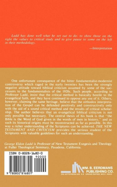 This is a print on demand book and is therefore non- returnable. The critical study of the Bible is necessary, says Ladd, and in this plea for a creative and positive approach to evangelical biblical criticism, he discusses the various types of criticism and suggests guidelines for evangelical criticism.