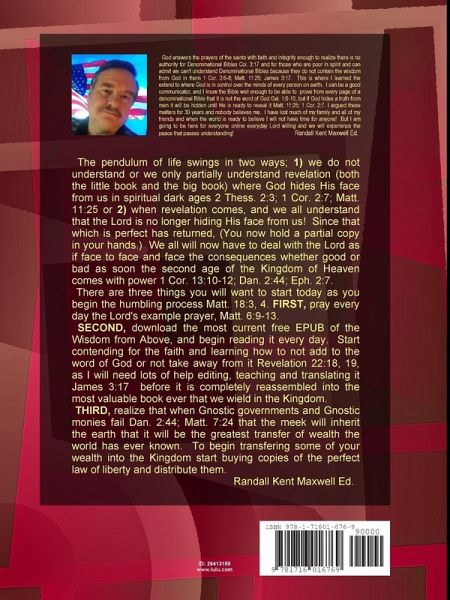 The Bible that is utilized as the rod of Iron in the Kingdom of Heaven is so powerful, that it must be hidden away from humanity to be hidden and only accessible to mankind for the thousand years of the Kingdom of heaven. The reason is that men cannot compete against God, and for the Lord to allow mankind to oppose Him he must hide his face, or his wisdom, His Bible, or at least the whole counsel of God. There could be no denominationalism for example if one had the one faith Bible available which exposed it. There would be no athiests, at least not in public, no socialists, etc. because the ways of God are as High as the heavens above the ways of men, and when men stand up against the authority of God they would rather mountains fall upon them than to have to go up against God. Since it is time for the Kingdom of Heaven and the Lord to instruct humanity as if face to face through the rod of iron, We are allowed to understand the will of the Lord Eph. 5:17.