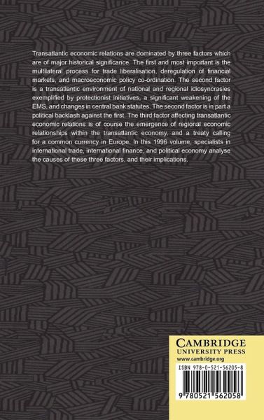 Transatlantic economic relations are dominated by three factors which are of major historical significance. The first and most important is the multilateral process for trade liberalization, deregulation of financial markets, and macro-economic policy coordination. The second factor is a transatlantic environment of national and regional idiosyncracies exemplified by protectionist initiatives, a significant weakening of the EMS, and changes in central bank statutes. The second factor is in part a political backlash against the first. The third factor affecting transatlantic economic relations is of course the emergence of regional economic relationships within the transatlantic economy, and a treaty calling for a common currency in Europe. In this volume, specialists in international trade, international finance, and political economy analyse the cause of these three factors, and their implications.