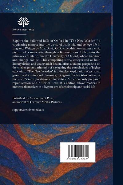 Explore the hallowed halls of Oxford in "The New Warden," a captivating glimpse into the world of academia and college life in England. Written by Mrs. David G. Ritchie, this novel paints a vivid picture of a university through a fictional lens. Delve into the intricacies of life within the University of Oxford, where tradition and change collide. This compelling story, categorized as both literary fiction and young adult fiction, offers a unique perspective on the challenges and triumphs of navigating the complexities of higher education. "The New Warden" is a timeless exploration of personal growth and institutional dynamics, set against the backdrop of one of the world's most prestigious universities. A meticulously prepared republication of a historical text, this edition allows readers to immerse themselves in a bygone era of scholarship and social life. This work has been selected by scholars as being culturally important, and is part of the knowledge base of civilization as we know it. This work is in the public domain in the United States of America, and possibly other nations. Within the United States, you may freely copy and distribute this work, as no entity (individual or corporate) has a copyright on the body of the work. Scholars believe, and we concur, that this work is important enough to be preserved, reproduced, and made generally available to the public. We appreciate your support of the preservation process, and thank you for being an important part of keeping this knowledge alive and relevant.