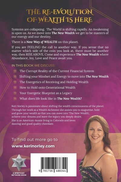 THE RE-EVOLUTION OF WEALTH IS HERE. Systems are collapsing. The World is shifting rapidly. An Awakening is upon us. As we move into The New Wealth we get to be masters of our energy and our destiny. There is a New Way of WEALTH on this planet. If you are FEELING the call to another way If you sense that no matter which side of coin you look at, there must be another way, then RISE ABOVE come and experience The New Wealth where Abundance, Joy, Love and Peace await you. In this book we discuss: - The Corrupt Reality of the Current Financial System - Shifting your Mindset and Energy to move into The New Wealth - The Energetics of Receiving and Holding Wealth - How to Hold onto Generational Wealth - Your Energetic Blueprint as a Legacy - What does life look like in The New Wealth? Keri Norley is passionate about shifting the wealth consciousness of the planet. Through her work as a Wealth Alchemist she assists you to magnetise, hold and grow your wealth so that you can move into 'The New Wealth', achieve your dreams and leave the legacy you deeply desire.