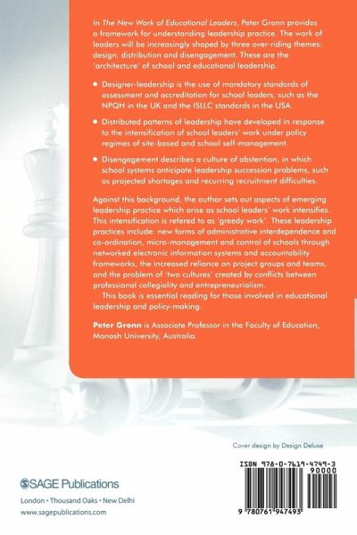 `If there in one word to describe the issues addressed by Peter Gronn in The New Work of Educational Leaders it's "timely" And if there is one book that education policy makers, system CEOs and education ministers should find the time to read, this is it' - Educare News `This book is essential reading fro those involved in educational leadership and policy development. This work is also valuable for those interested in the locally organized and interactionally achieved context of institutional work' - Discourse: Studies in the Cultural Politics if Education `Though based in Australia, Peter Gronn shows familiarity with the British education system, and this boo is relevant to those in the compulsory and post-compulsory sectors interested in the themes of education leadership' - Learning and Skills Research In The New Work of Educational Leaders, Peter Gronn provides a new framework for understanding leadership practice. The work of leaders will increasingly be shaped by three overriding but contradictory themes: design; distribution; and disengagement. These are the `architecture' of school and educational leadership. Designer-leadership is the use of mandatory standards of assessment and accreditation for school leaders, such as the National Qualification for Headship (NPQH) in the United Kingdom and the (Interstate School Leaders Licensure Consortium (ISLLC) standards in the United States. Distributed patterns of leadership have developed in response to the intensification of school leaders' work under policy regimes of site-based and school self-management. Disengagement describes a culture of abstention, in which school systems anticipate leadership succession problems, such as projected shortages and recurring recruitment difficulties.
