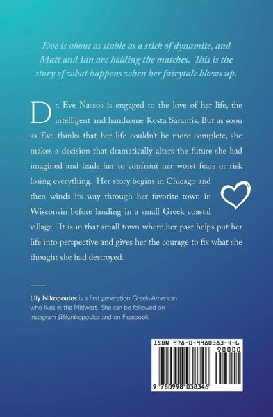 The sequel to "Christmas and Eve." Dr. Evangelia Nassos is engaged to the love of her life, the intelligent and handsome Kosta Sarantis. But as soon as Eve thinks that her life couldn't be more comlete, she is forced to make a decision that dramatically alters the future she had imagined and leads her to confront her worse fears or risk losing everything. Her story begins in Chicago and then winds its way through her favorite town in Wisconsin before landing in a small Greek coastal village. It is in that small town where her past helps put her life into perspective and gives her the courage to fix what she thought she had destroyed.