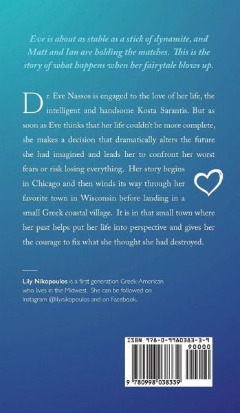 This book is the sequel to "Christmas and Eve." Dr. Eve Nassos is engaged to the love of her life, the intelligent and handsome Kosta Sarantis. But as soon as Eve thinks that her life couldn't be more complete, she is forced to make a decision that dramatically alters the future she had imagined and leads her to confront her worse fears or risk losing everything. Her story begins in Chicago and then winds its way through her favorite town in Wisconsin before landing in a small Greek coastal village. It is in that small town where her past helps put her life into perspective and gives her the courage to fix what she thought she had destroyed.