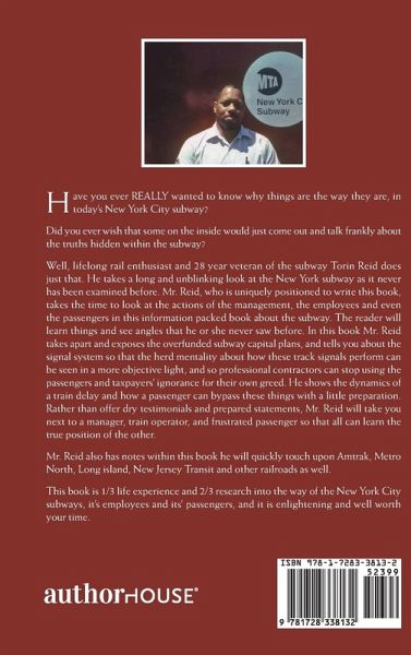 Have you ever REALLY wanted to know why things are the way they are, in today's New York City subway? Did you ever wish that some on the inside would just come out and talk frankly about the truths hidden within the subway? Well, lifelong rail enthusiast and 28 year veteran of the subway Torin Reid does just that. He takes a long and unblinking look at the New York subway as it never has been examined before. Mr. Reid, who is uniquely positioned to write this book, takes the time to look at the actions of the management, the employees and even the passengers in this information packed book about the subway. The reader will learn things and see angles that he or she never saw before. In this book Mr. Reid takes apart and exposes the overfunded subway capital plans, and tells you about the signal system so that the herd mentality about how these track signals perform can be seen in a more objective light, and so professional contractors can stop using the passengers and taxpayers' ignorance for their own greed. He shows the dynamics of a train delay and how a passenger can bypass these things with a little preparation. Rather than offer dry testimonials and prepared statements, Mr. Reid will take you next to a manager, train operator, and frustrated passenger so that all can learn the true position of the other. Mr. Reid also has notes within this book he will quickly touch upon Amtrak, Metro North, Long island, New Jersey Transit and other railroads as well. This book is 1/3 life experience and 2/3 research into the way of the New York City subways, it's employees and its' passengers, and it is enlightening and well worth your time.