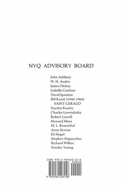 Since its founding in 1969 by William Packard, The New York Quarterly has been devoted to excellence in the publication of a unique and fervent cross-section of contemporary American poetry regardless of school of thought, style, or genre. Our only concern is to focus on the craft that underlies effective poetry writing. The New York Quarterly features works by both known and emerging poets. The NYQ Craft Interviews present the views of some of our most outstanding poets on the general subjects of style, prosody and technique. The issues are rounded out with an essay or two on the subject of contemporary American poetry that is both accessible and meaningful to readers, poets, students, and teachers of poetry alike. NYQ 15 features a craft interview with Howard Moss; an editorial about NYQ type styles; an essay, "The Poetry of the Peking Opera," by John D. Mitchell and Emanuel Shwartz; "The White Snake" translation by Donald Chang and William Packard; "Publishers of Poetry" by Helena Moynihan; photos of Shiraishi Kazuko, Tomioka Taeko, Judith Sherwin, James Lewisohn, Rosmary Daniell and NYQ Board; and poetry by Claire McAllister, Edwin Honig, John Updike, Lawrence Ferlinghetti, Richard Hugo, Jackson Mac Low, Charles Bukowski, Robert Lax, John Pauker, David Ignatow, James Lewisohn, Leo Connellan, Constance Carrier, Jesse Stuart, Gil Orvitz, John Tagliabue, Willis Barnstone, Nadia Christensen, Gyula Illyes, Miriam Andrews, Susan Schell, Norman Stock, Ira Wallach, Mark Halliday, Catherine Petroski, Virginia Brady Young, Jim Brodey, James Barry, Ken Smith, Ira Sadoff, Ron Adams, Jennifer Humphrey, Donald Schenker, Fritz Hamilton, Frank Sanford, Beth Bentley, James Lee, Joyce Odam, Betty Cue, Richard Shelton, Lorenzo Thomas, Ramona Weeks, Thomas Fitzsimmons, Robert Dugan, A. A. Dewey, Nancy Scott, Julie Suk, Anne Fremantle, Olga Cabral, Herbert Morris, Madeleine Keller, Elaine Barden, Jean Balderston, Linda Krenis, Layle Silbert, Kathleen Spivack, Charles Fishman, Joel Sander, Rob Swigart, Stuart Dybek, Douglas W. Lawder, Drew Hingson, and Kerry Thomas.