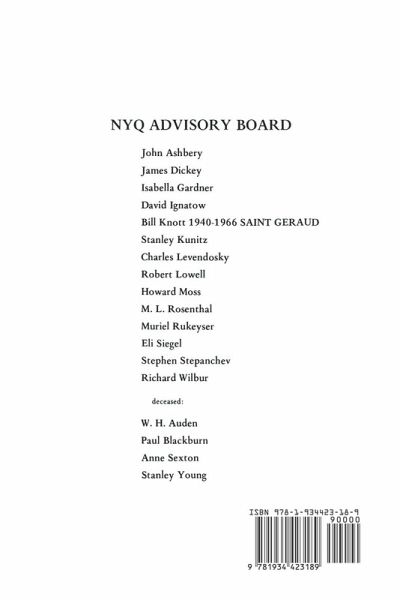 Since its founding in 1969 by William Packard, The New York Quarterly has been devoted to excellence in the publication of a unique and fervent cross-section of contemporary American poetry regardless of school of thought, style, or genre. Our only concern is to focus on the craft that underlies effective poetry writing. The New York Quarterly features works by both known and emerging poets. The NYQ Craft Interviews present the views of some of our most outstanding poets on the general subjects of style, prosody and technique. The issues are rounded out with an essay or two on the subject of contemporary American poetry that is both accessible and meaningful to readers, poets, students, and teachers of poetry alike. NYQ 18 features the first craft interview with W. D. Snodgrass (the second is in NYQ 61); an editorial about Laotse and the Tao; photographs of poet statues of Longfellow, Poe, Burns, Dante, and Whitman; and poetry by William Meredith, Robert Pack, A. R. Ammons, Helen Adam, Toby Olson, Erica Jong, Charles Bukowski, Linda King, Knute Skinner, Jackson Mac Low, Peter Viereck, Eli Siegel, William Mundell, Barbara Holland, Stephen Stepanchev, Siv Cedering Fox, David Shapiro, Anne Waldman, Leo Connellan, James Lewisohn, Rudolf Wittenberg, Harold Witt, Robert Clayton Casto, Sam Toperoff, John Romano, Lynne Savitt, Greg Kuzma, Marc Tretin, Virginia Bortin, Helena Moynihan, Judith Minty, Lola Haskins, Florence Elon, Tom Cuson, Jeff Wanshel, Norman Stock, Diane Raintree, Robert Carney, Charlie Lebeda, David Wann, and Robert Hoeft.