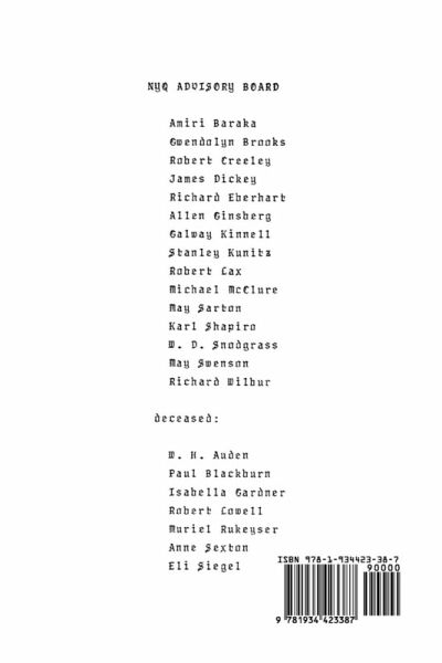 Since its founding in 1969 by William Packard, The New York Quarterly has been devoted to excellence in the publication of a unique and fervent cross-section of contemporary American poetry regardless of school of thought, style, or genre. Our only concern is to focus on the craft that underlies effective poetry writing. The New York Quarterly features works by both known and emerging poets. The NYQ Craft Interviews present the views of some of our most outstanding poets on the general subjects of style, prosody and technique. The issues are rounded out with an essay or two on the subject of contemporary American poetry that is both accessible and meaningful to readers, poets, students, and teachers of poetry alike. NYQ 38 features a craft interview with James Laughlin, an editorial on technique, an essay by Steve Kowit, and poetry by James Laughlin, Charles Bukowski, Desmond Egan, Macdonald Carey, Lyn Lifshin, Andrew Glaze, Patricia Farewell, William Mundell, Candy Graybill, Lisa Palma, William Packard, Stephen Stepanchev, Harold Witt, Norman Stock, Sylvester Pollet, Tony Gloeggler, Donald Lev, Robert Cooperman, April Lahar, Steve Kowit, Arthur Winfield Knight, Herb Kitson, Chris Connolly, Anna Adams, Tom Bryant, Nixeon Handy, Beth Lynn Kaplan, Richard Kostelanetz, Keith Johnson, Virginia Julavita, Robert Tyler, Terrell Hunter, Edward Mycue, Peter Murphy, Robert Sargent, and Lola Haskins.