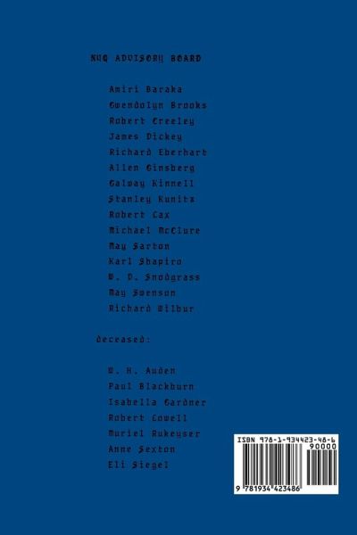 Since its founding in 1969 by William Packard, The New York Quarterly has been devoted to excellence in the publication of a unique and fervent cross-section of contemporary American poetry regardless of school of thought, style, or genre. Our only concern is to focus on the craft that underlies effective poetry writing. The New York Quarterly features works by both known and emerging poets. The NYQ Craft Interviews present the views of some of our most outstanding poets on the general subjects of style, prosody and technique. The issues are rounded out with an essay or two on the subject of contemporary American poetry that is both accessible and meaningful to readers, poets, students, and teachers of poetry alike. NYQ 48 features a craft interview with Hugh Kenner, an editorial on NYQ poems, and poetry by Charles Bukowski, X. J. Kennedy, Michael Moriarty, Carolyn Slapikas, Antler, Lyn Lifshin, Anna Adams, Leo Connellan, Andrew Glaze, Michael Kimball, Ulf Kirchdorfer, Enid Dame, Iam Rawkinrec, Franz Douskey, Harold Witt, Michael Benedikt, Lynne Savitt, Alison Stone, Bill Shields, Emile Snyder, Linda Lerner, Lewis Turco, Loren Goodman, Chris Brown, Patricia Farewell, William Mundell, Simon Perchik, Sylvester Pollet, Tom Rockwell, Maria Palumbo, Jeff Poniewaz, Lisa Palma, William Packard, Tony Quagliano, Peter Desy, Elisavietta Ritchie, Sherman Alexie, Gina Bergamino, Louis Brodsky, Donna Lane, Terri Brown-Davidson, Victoria McCabe, Robert Miltner, Ethan Gilsdorf, Robert Beveridge, Al Masarik, Patricia Covey, Robert Cooperman, Jennie Orvino, Kathryn Cullen-DuPont, Ann Chernow, Barbara Kriss, Kat Snider, June Collins, Jo-Anne Cappeluti,Joan Seliger Sidney, Stephanie Dickinson, Liubov Sirota, Linda Tieber, Sally Derringer, George Eklund, Thomas Eisele, Linda Iversen, Jeffrey Zable, and David Gelsanliter.
