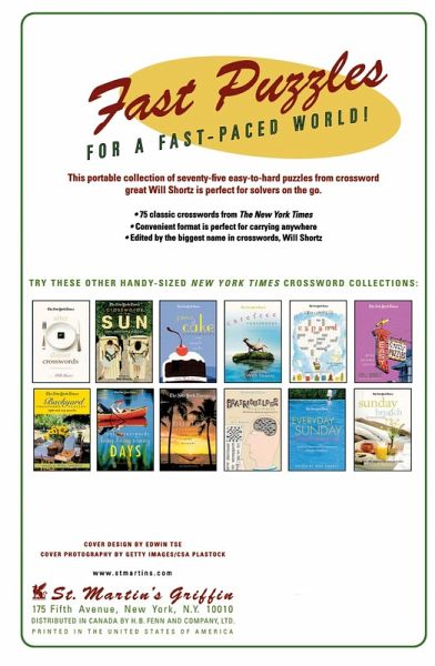 Fast puzzles for a fast-paced world! This portable collection seventy-five of easy-to-hard puzzles from crossword great Will Shortz is perfect for solvers on the go. Features: *75 New York Times crossword puzzles *Portable format is perfect for travel or solving at home *Edited by the biggest name in crosswords, Will Shortz.