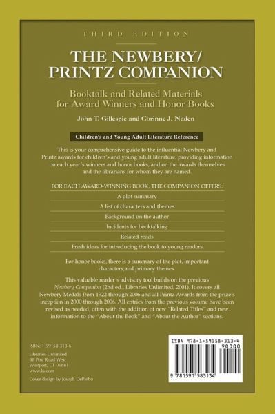 This comprehensive and practical guide to the influential Newbery and Printz awards for children's and young adult literature provides information on each year's winners and honor books, as well as on the awards themselves and the librarians for whom they are named. For each award-winning book, there is a plot summary, list of characters and themes, background on the author, incidents for booktalking, related reads, and fresh ideas for introducing the book to young readers. A comprehensive guide to the influential Newbery and Printz awards for children's and young adult literature, providing information on each year's winners and honor books, and on the awards themselves and the librarians for whom they are named. For each award-winning book, there is a plot summary, list of characters and themes, background on the author, incidents for booktalking, related reads, and fresh ideas for introducing the book to young readers. For honor books, there is a summary of the plot, important characters, and primary themes. This valuable reader's advisory tool builds on the previous Newbery Companion (2nd ed., Libraries Unlimited, 2001). It covers all Newbery Medals from 1922 through 2006 and all Printz Awards from the prize's inception in 2000 through 2006. All entries from the previous volume have been revised as needed, often adding new Related Titles and new information to the About the Book and About the Author sections.