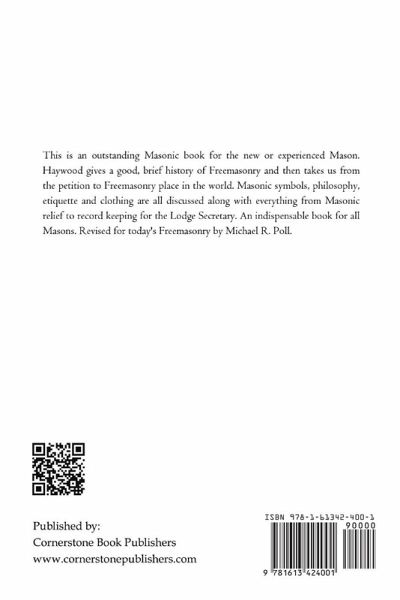This is an outstanding Masonic book for the new or experienced Mason. Haywood gives a good, brief history of Freemasonry and then takes us from the petition to Freemasonry's place in the world. Masonic symbols, philosophy, etiquette and clothing are all discussed along with everything from Masonic relief to record keeping for the Lodge Secretary. An indispensable book for all Masons.
