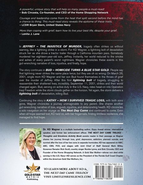 Thoughts and Emotions Activity Book companion to The Next Day Came Trilogy assists readers in the passage as Dr. Wagner shares her journey through loss, grief, depression, addiction, planned suicide, and survival after the loss of her two sons in separate homicides. As a single parent, who lost two children in two years at 18 and 24, Dr. Wagner believes that journaling helps to heal the heart and mind. The stress of loss can blank out memories when they become too painful. One day these words will be a blessing to go back and read. Journaling allows for the processing of events and the perspective of feelings. As you read The Next Day Came Trilogy, it may trigger memories and feelings. Write them within the pages of this companion journal. In addition to space for writing, this companion journal also includes coloring pages to distract, escape, and relax your mind. Coloring helped Dr. Wagner to clear her mind for a while and release the stress in her life.