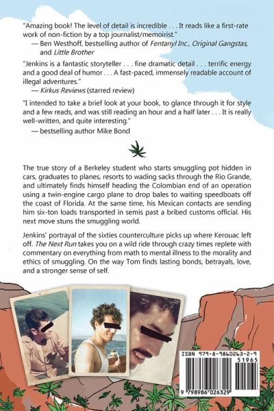 The true story of a 60s Berkeley student who starts smuggling pot hidden in cars, graduates to planes, resorts to wading sacks through the Rio Grande, and ultimately finds himself heading the Colombian end of an operation using a twin-engine cargo plane to drop bales to waiting speedboats off the coast of Florida. At the same time, his Mexican contacts are sending him six-ton shipments transported in semis past a bribed customs officer. His next move stuns the smuggling world. Jenkins' portrayal of the sixties counterculture picks up where Kerouac left off. The Next Run takes you on a wild ride through crazy times replete with commentary on everything from math to mental illness to the morality and ethics of smuggling. On the way Tom finds lasting bonds, betrayals, love, and a stronger sense of self.