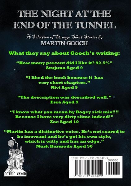 This is a collection of short stories written by multi-award winning film maker and Director Martin Gooch. Stories of the end of the world, clock-work hearts, evil skies, lost soldiers and being born in the wrong dimension. Something to get your brain circuits going...