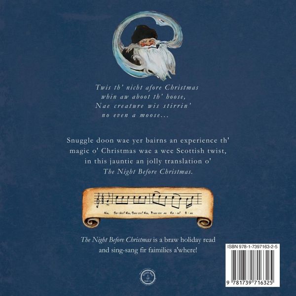 The classic poem "The Night Before Christmas" by Clement Clarke Moore has been translated into Scots by Kirsty Strange. Blending Scottish humour with a jaunty wee musical score by James Strange, this version is a fresh take on a classic while preserving the original poem's essence. The beautiful vintage artwork of Jessie Willcox Smith has been restored to illustrate this reimagined work. So snuggle doon and enjoy this nostalgic trip with your bairns as you experience the magic of Christmas with a Scottish twist. "Twis th' nicht afore Christmas when aw aboot tha hoose, Nae creature wis stirrin' no even a moose..." Fantastic stocking filler A quirky take on a timeless classic Cherish this festive story for all the family to enjoy Enjoy singing along as Santa calls out to his reindeer! Fun to read Glossary to help you learn Scots words The Night Before Christmas in Scotland is a fantastic addition to any book lover's collection and perfect for sharing with others. Enjoy reading it with your best "Outlander" accent and share this keepsake with family members during festive gatherings. This quirky take on a classic makes a fantastic stocking filler or Christmas Eve gift. It's the perfect gift for anyone interested in Scottish culture, those with Scottish roots, and those who enjoy collecting different versions of the famous poem. Add a wee bit of festive magic to your holiday season this year with "The Night Before Christmas in Scotland". About the author: Kirsty Strange is a Scottish author. She enjoys retelling old stories using the Scots language and adding a touch of humour. She lives in Fife with her husband, two spirited kids, and two equally spirited cats. She is fascinated by Scottish history and travels around Scotland with her family, researching stories from the past to share with others.