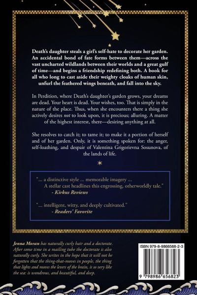 Jenna Moran has naturally curly hair and a doctorate. After some time in a mailing tube the doctorate is also naturally curly. She writes in the hope that it will not be forgotten that the thing-that-moves in people, the thing that lights and moves the levers of the brain, is so very like the sea: is wondrous, and beautiful, and deep.