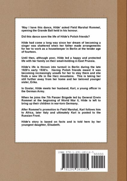 'May I have this dance, Hilde' asked Field Marshal Rommel, opening the Grande Ball held in his honour. Did this dance save the life of Hilde's Polish friends? Hilde had come a long way since her dream of becoming a singer was shattered when her father made arrangements for her to work as a housekeeper in Berlin at the tender age of fourteen. Hilde's life is thrown into turmoil in Berlin during the late 1920's early 1930's. Having Polish friends meant it was becoming increasingly unsafe for her to stay there and she finds a new life in the Harz mountains. In Goslar, Hilde meets her husband, Karl, a young officer in the German Army. When he joins the 7th Panzer Brigade led by General Erwin Rommel at the beginning of World War II, Hilde is left to bring up their children in war-torn Germany. Hilde's story is based on facts and is told here by her youngest daughter, Elisabeth.
