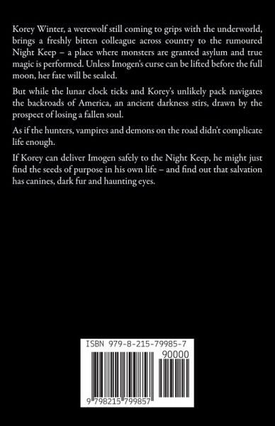 Korey Winter, a werewolf still coming to grips with the underworld, brings a freshly bitten colleague across country to the rumoured Night Keep - a place where monsters are granted asylum and true magic is performed. Unless Imogen's curse can be lifted before the full moon, her fate will be sealed. But while the lunar clock ticks and Korey's unlikely pack navigates the backroads of America, an ancient darkness stirs, drawn by the prospect of losing a fallen soul. As if the hunters, vampires and demons on the road didn't complicate life enough. If Korey can deliver Imogen safely to the Night Keep, he might just find the seeds of purpose in his own life - and find out that salvation has canines, dark fur, and haunting eyes.
