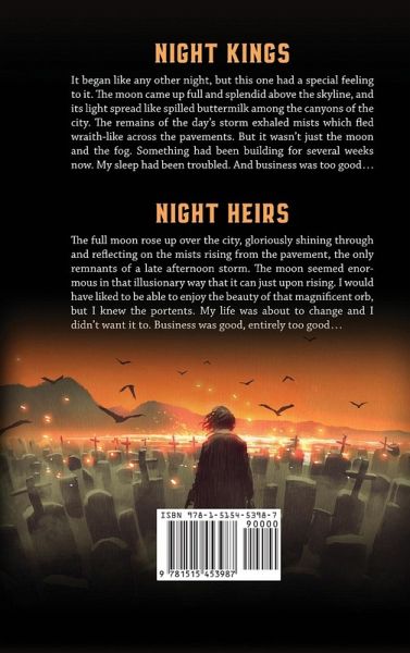 Night Kings It began like any other night, but this one had a special feeling to it. The moon came up full and splendid above the skyline, and its light spread like spilled buttermilk among the canyons of the city. The remains of the day's storm exhaled mists which fled wraith-like across the pavements. But it wasn't just the moon and the fog. Something had been building for several weeks now. My sleep had been troubled. And business was too good. . . Night Heirs The full moon rose up over the city, gloriously shining through and reflecting on the mists rising from the pavement, the only remnants of a late afternoon storm. The moon seemed enormous in that illusionary way that it can just upon rising. I would have liked to be able to enjoy the beauty of that magnificent orb, but I knew the portents. My life was about to change and I didn't want it to. Business was good, entirely too good. . .
