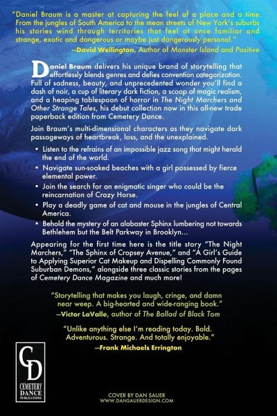 Like a vinyl record from days gone by, author Daniel Braum spins a unique blend of speculative fiction that effortlessly blends fantasy, science fiction, horror, and mysticism. Braum's multi-dimensional characters are drawn into dark worlds and investigate the unexplainable at the edges of civilization. In The Night Marchers, the debut collection from Daniel Braum, readers will encounter: * A song that might herald the end of the world. * A young girl possessed by a hurricane. * A Native American Death Metal singer who might be the reincarnation of Crazy Horse. * A cat and mouse chase with demons through the jungles of Central America. * A has-been rock star haunted by the pet fish of his failed relationship. * An erotically charged night in the desert that might end with redemption, or entwined in the thorns of a cactus monster. * A beautiful alabaster Sphinx lumbering not towards Bethlehem but the Belt Parkway in Brooklyn... Appearing for the first time here is the title story "The Night Marchers," and "The Sphinx of Cropsey Avenue," alongside three classic stories from the pages of Cemetery Dance magazine and many more! "Daniel Braum is a true storyteller. By that I mean he spins tales of wonder that grasp at ideas and themes that human beings have been pondering since our brains become up to the task. These stories will also make you laugh, cringe, and damn near weep. This is such a big-hearted and wide ranging book and Daniel Braum is the real deal, a writer to treasure." -Victor LaValle, author of The Ballad of Black Tom Daniel Braum's fiction has been classified as fantasy, science fiction, and horror but he prefers the good old fashioned term of just "fiction", which when he was growing up simply meant a story were anything could happen. His stories frequently defy category and reside in the fuzzy areas between genres, utilizing and combining genre elements to produce tales that are wholly unique.
