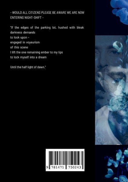 "Now entering Night-shift" "If the edges of the parking lot, hushed with bleak darkness demands to look upon - engaged in voyeurism of this scene I lift the one remaining ember to my lips to lock myself into a dream Until the half light of dawn."