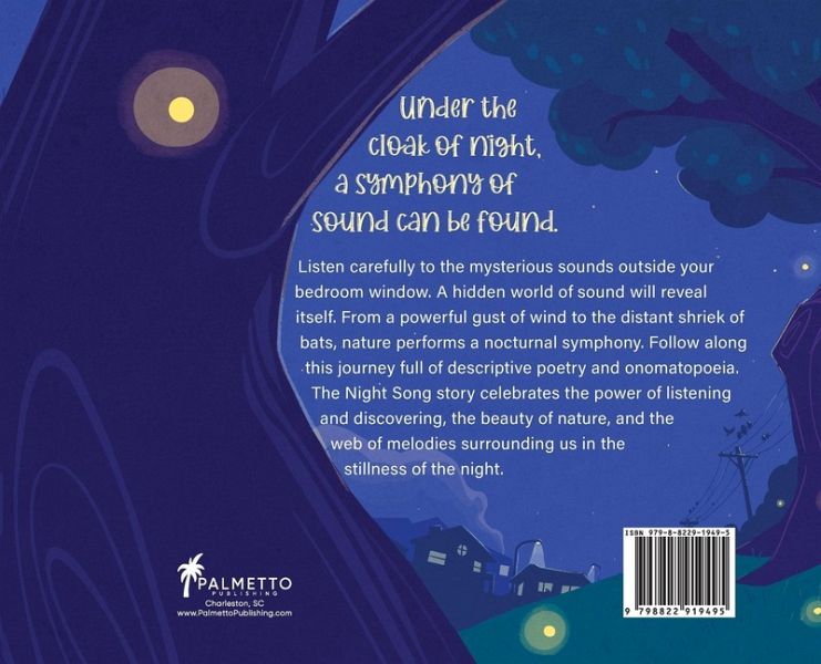 Under the cloak of night, a symphony of sound can be found. Listen carefully to the mysterious sounds outside your bedroom window. A hidden world of sound will reveal itself. From a powerful gust of wind to the distant shriek of bats, nature performs a nocturnal symphony. Follow along this journey full of descriptive poetry and onomatopoeia. The Night Song story celebrates the power of listening and discovering, the beauty of nature, and the web of melodies surrounding us in the stillness of the night.