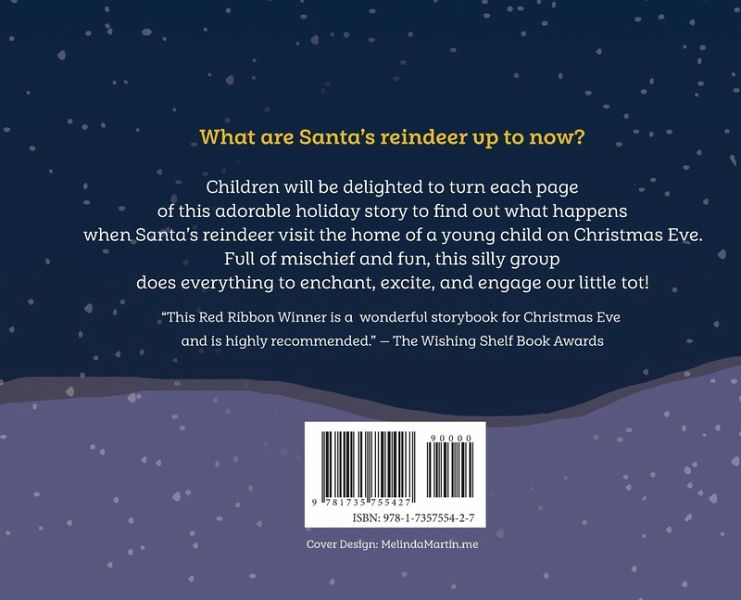 What are these silly reindeer up to now? Children will be delighted to turn each page of this adorable holiday rhyming story to find out what happens when Santa's reindeer visit the home of a young child on Christmas Eve. Full of mischief and fun, this jolly group does everything to enchant, excite, and engage their new little friend! Help your child learn to count while enjoying the magic and merriment these reindeer provide in this award-winning storybook! A Teacher and Parents Favorite book for early learners! *Wishing Shelf Books Awards Red Ribbon WINNER *Purple Dragonfly (Story Monsters) Award FIRST Place WINNER - Children's Holiday
