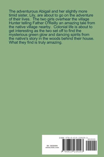 Two sisters in colonial North America set off on an adventure to find the spirits that dance by the light of an eerie green glow in the wild woods behind their house. With the help of their Mother, the village Hunter, and Father O'Reilly, the girls make amazing discoveries about the world they thought they knew and forge new friendships with the native people nearby. Parents and young readers alike will delight in this wonderful adventure.