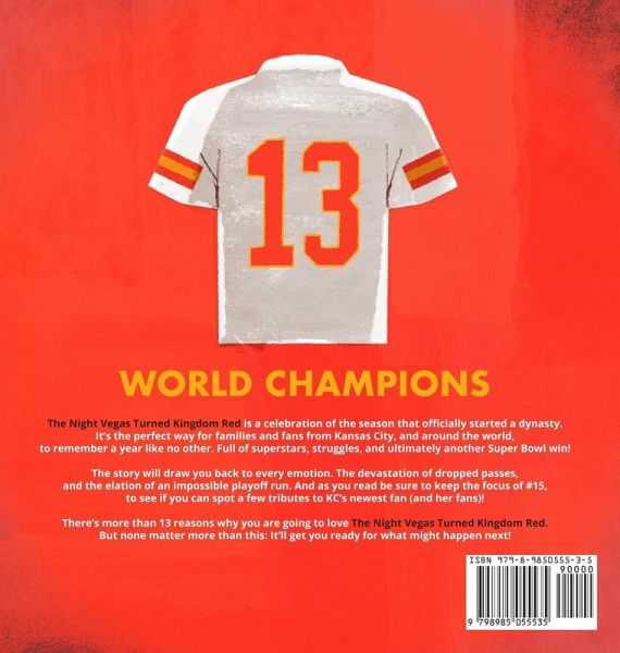 The Night Vegas Turned Kingdom Red is a celebration of the season that officially started a dynasty. It's the perfect way for families and fans from Kansas City, and around the world, to remember a year like no other. Full of superstars, struggles, and ultimately another Super Bowl win! The story will draw you back to every emotion. The devastation of dropped passes, and the elation of an impossible playoff run. And as you read be sure to keep the focus of #15, to see if you can spot a few tributes to KC's newest fan (and her fans)! There's more than 13 reasons why you are going to love The Night Vegas Turned Kingdom Red. But none matter more than this: It'll get you ready for what might happen next!