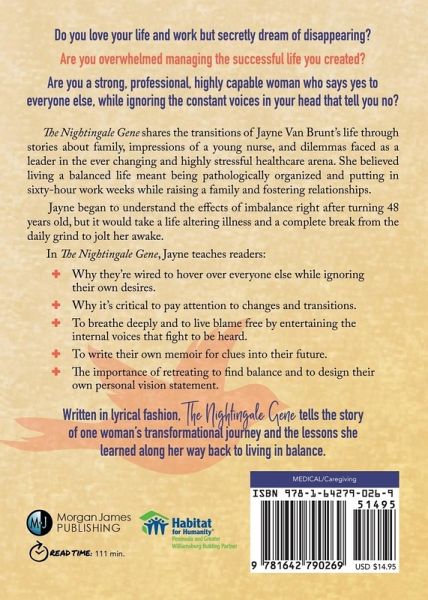 The first in a trilogy highlighting caregiving as a demanding, yet rewarding, profession that forces work-life imbalance, The Nightingale Gene provides lessons for those who make caring for others a priority over taking care of themselves.