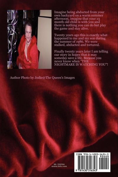 True story of a mother and her infant son whose stalking, abduction and torture spanned 3 months and 5 states. Only by sheer will and determination did she and her son survive. Now 20 years later she is telling her story so that others will know and be aware that The Nightmare Is Watching You!