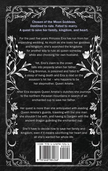 For the past five years Princess Eira has run from her impending wedding. As much as she loves her goddess and kingdom, she's searched the kingdoms for another way to rule as queen someday while also choosing her own husband. Yet, Eira's claim to the crown falls into jeopardy when her father, King Brennus, is poisoned and fated to a sleep of living death and Eira is next on the assassin's hit list - who happens to be her stepmother, Queen Amelia. After Eira escapes Queen Amelia's clutches she journeys to the northern Paravian mountains in search of an enchanted cup to save her father. Her quest is more than she anticipated with evading Queen Amelia's guards, traveling with the one man she shouldn't be with, and having to bargain with the ancient dragon guarding the enchanted cup. She'll have to decide how to save her family and kingdom, even if it means sacrificing her heart and all she's wanted her whole life. If you like Sarah J Maas, Jennifer Estep, and Maxym Martineau, then you'll love this adult fantastical retelling of the classic Snow White fairy tale.