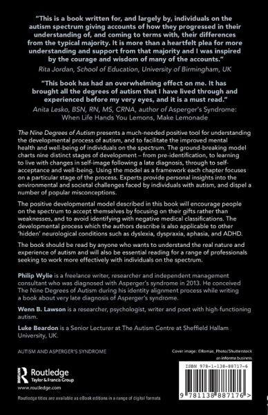 The Nine Degrees of Autism presents a much-needed positive tool for understanding the developmental process of autism, and to facilitate the improved mental health and well-being of individuals on the spectrum. The ground-breaking model charts nine distinct stages of development - from pre-identification, to learning to live with changes in self-image following a late diagnosis, through to self-acceptance and wellbeing. Using the model as a framework each chapter focuses on a particular stage of the process. Experts provide personal insights into the environmental and societal challenges faced by individuals with autism, and dispel a number of popular misconceptions.